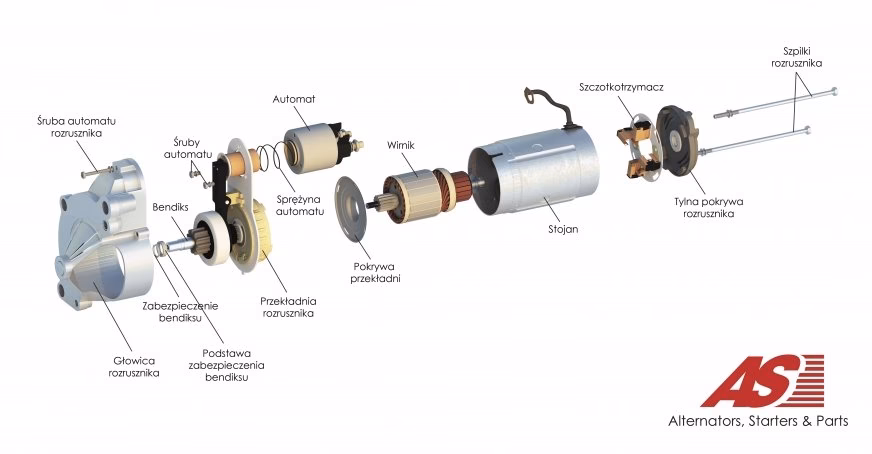 Aby skutecznie diagnozować i naprawiać rozrusznik, warto poznać jego budowę. Chociaż na rynku istnieje wiele modeli (np. z przekładnią planetarną lub z reduktorem), podstawowe elementy pozostają niezmienne. Oto najważniejsze z nich: