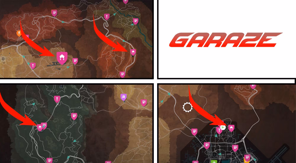 - Garaże (4 lokalizacje): Twoja baza operacyjna. To tutaj przechowujesz swoją kolekcję samochodów, personalizujesz je i wybierasz pojazd na kolejne wyzwania.